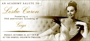 Leslie Caron will be on hand for the premiere of a new digital restoration of the 1958 best picture Oscar winner Gigi tomorrow, October 10, at 7:30 p.m. at the Academy of Motion Picture Arts and Sciences‘ Samuel Goldwyn Theater in Beverly Hills. Film critic Stephen Farber will host an onstage conversation with Caron. This event was a few years ago. I would of loved to have gone and seen the movie in the Goldwyn Theater and met Leslie Caron!