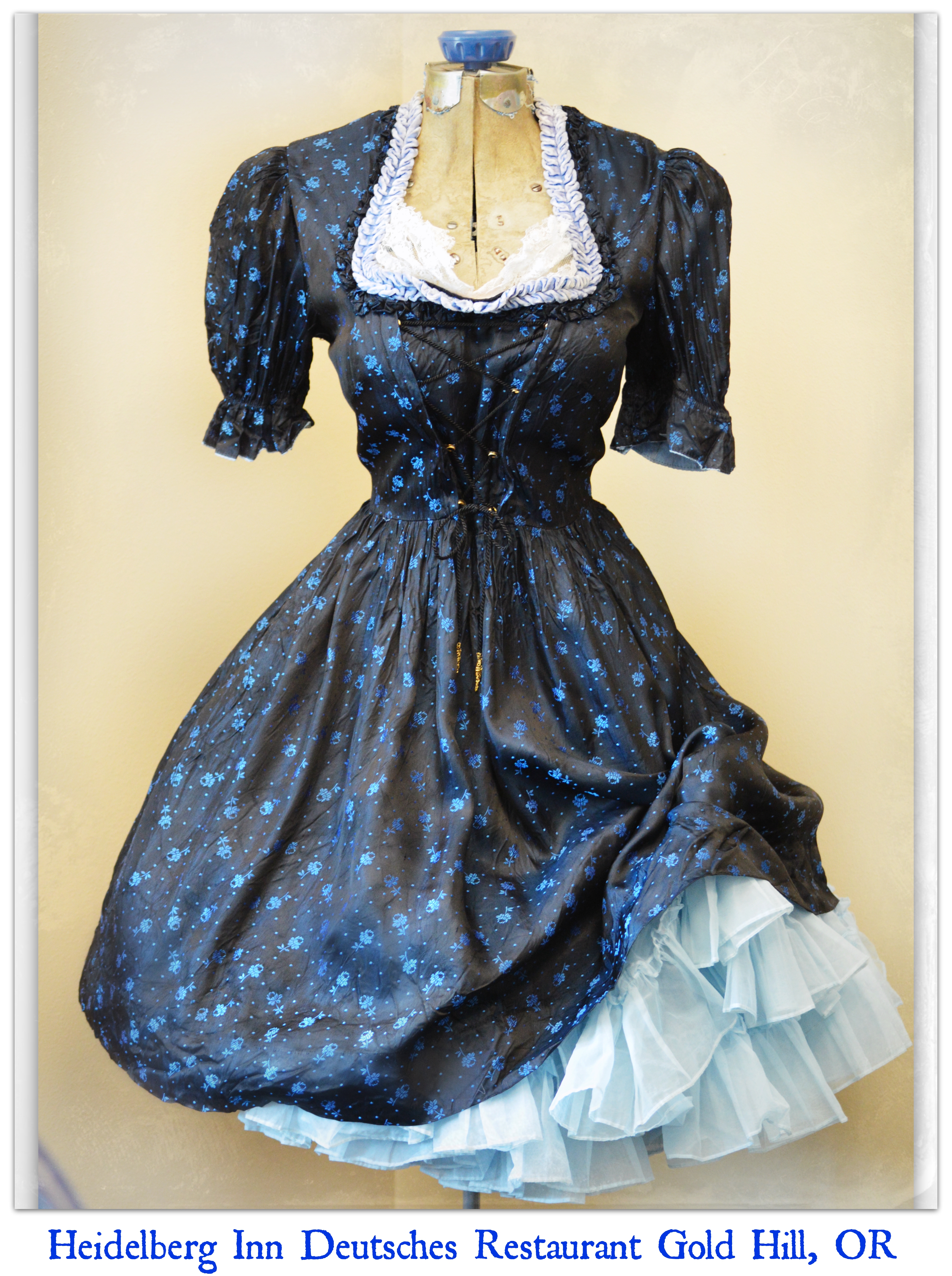 21 years ago we did an estate auction for our best friends selling their parents belongings. The family years ago had a famous German restaurant in Gold Hill. At the time of the auction i remember thinking the dress was just too cute to put in the auction, i knew someday our friends would want it! The waitresses at their family’s Heidelberg Inn wore these traditional German folk dresses. The parents came from the old country so everything in the restaurant was authentic. I found the dress in storage this week, I just got it back from the cleaners I’m so excited to share my picture. Sending the dress to them today!!