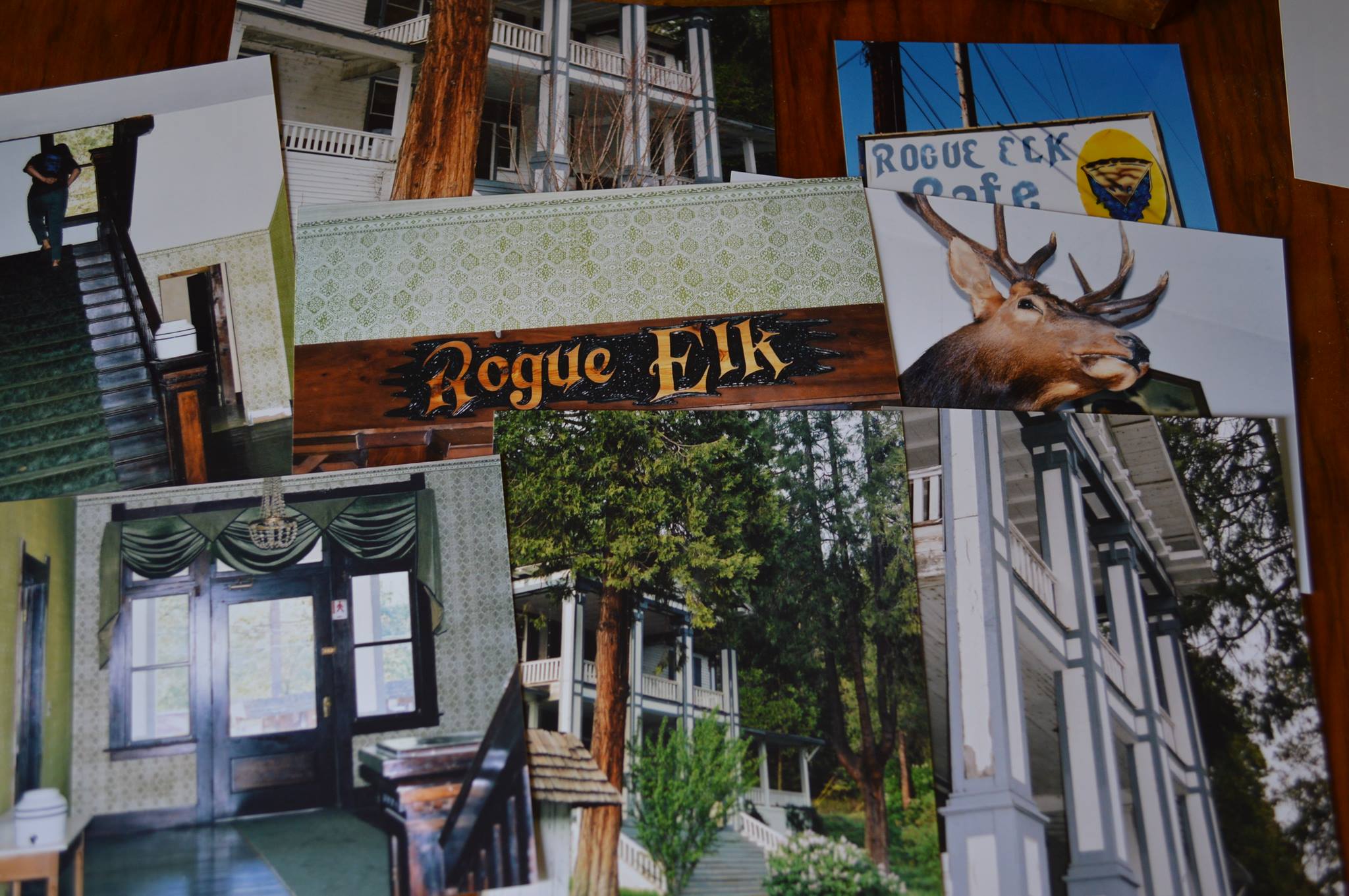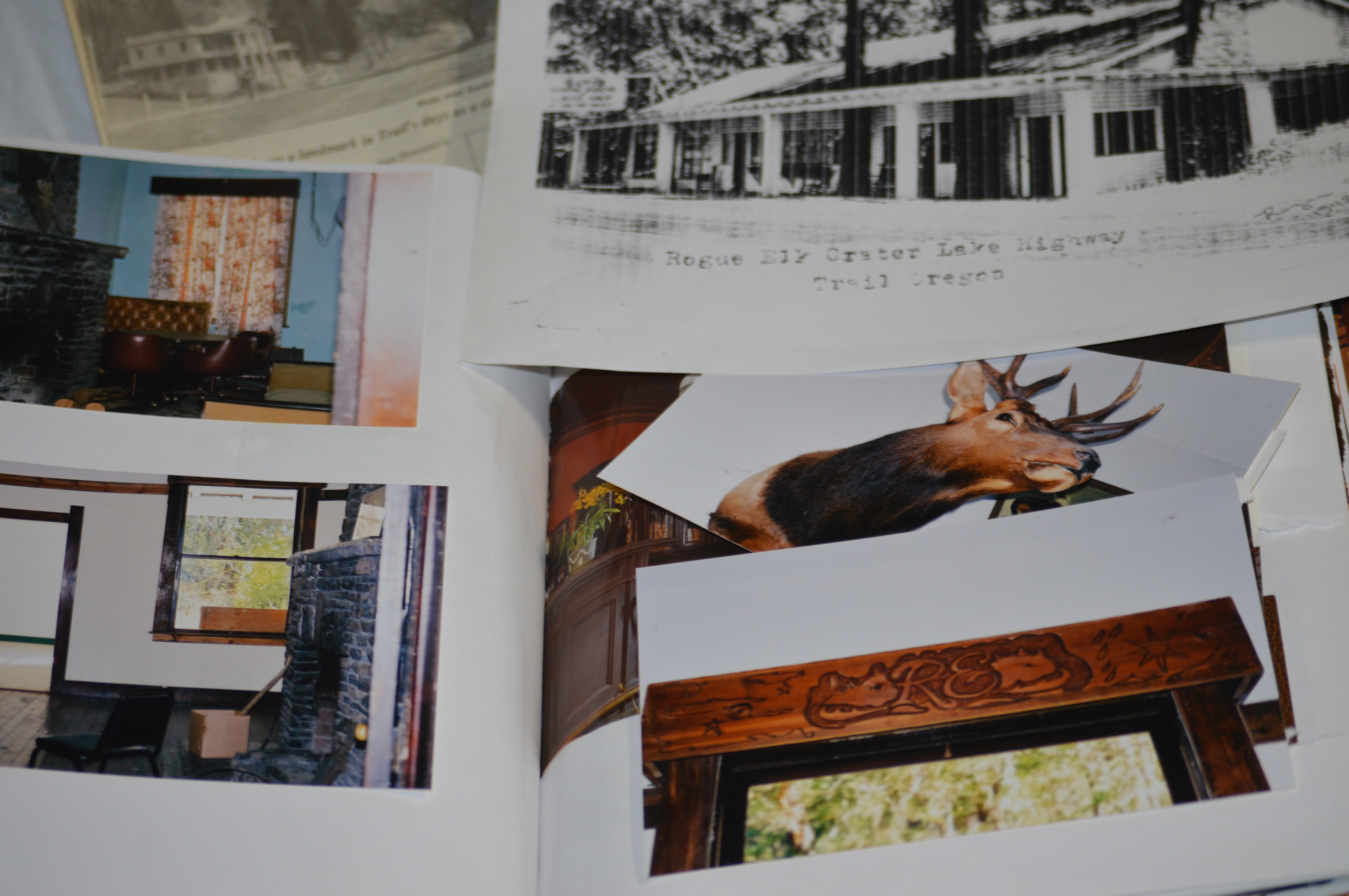 I found this postcard Written from McDonald pictured above, to Emma Andrews in 1926, Weird how these things seem to migrate to me… I am remembering when our friends Ron and Janet stayed the night to check out the rundown hotel on our behalf. They said it was Beyond Spooky and they said they were Scared out of their wits! They commented on strange bad smells and sounds, especially a popping sound like a power breaker. In the long process of buying the place we collected a massive painting of a Rogue Elk to hang and other art of Crater Lake, Zane Grey collectibles and unique furnishings to complement the historic decor. I was obsessed with the research and mapping out our plans of how we were going to execute this huge historic money pit endeavor. We were unable to negotiate a deal with the separate lot, the eyesore parcel across the street on the river where the dance hall used to be. Unfortunately, a deal breaker because this is what you see when you walk out on to the grand porch or look out on from the massive windows. We declined from the purchase, in turn losing our large down payment. However, looking back I think it was the best decision. We have great memories of driving out to Trail Oregon, walking to the river, checking out the camp grounds, and talking to the neighbors. Not to mention all the humorous memories of eating at the old cafe on the property! If time travel was possible I would definitely love to go back to the grand opening of the Rogue Elk Hotel. Anyway, thanks for reading my blog! Oh’ and I almost forgot if by chance you buy the place, could you please get rid of the hideous blue paint! Note historic photos above, thanks!